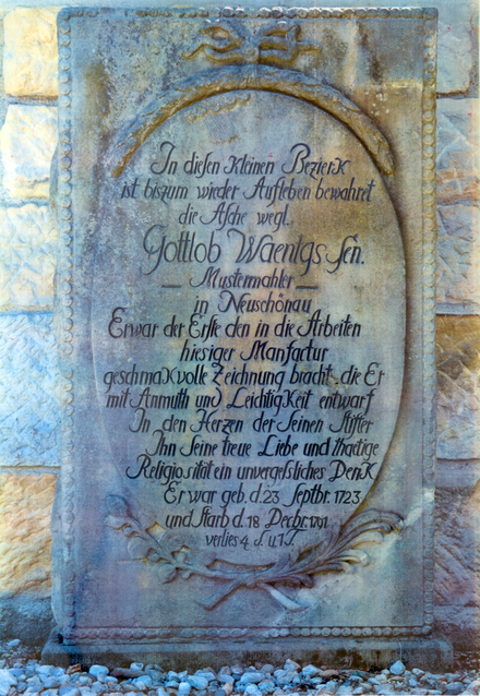 Hoch geachtet, außergewöhnlich begabt und ein ausgewiesener Kenner der Antike … Gottlob Waentig übertraf an Bedeutung und Kunstfertigkeit seine Vorgänger bei Weitem. Seine Musterzeichnungen verhalfen der Damastweberei in Großschönau zur Blüte. So ließen die Großschönauer einst ihm zu Ehren in Stein meißeln: „Er war der Erste, der in die Arbeiten hiesiger Manufactur geschmackvolle Zeichnung brachte, die Er mit Anmuth und Leichtigkeit entwarf.“ Als Sohn eines Damastwebers begründete Gottlob Waentig eine „Familiendynastie“ zahlreicher bedeutender Mustermaler – darunter sein Enkel, der „Malersgottlieb“ Christian Gottlieb Waentig. Christian David Waentig, ein Sohn Gottlobs, ließ für seine erfolgreiche Damastmanufaktur das „Kupferhaus“ erbauen, die heutige Heimstatt des Museums.