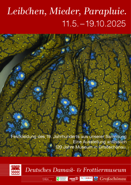 Eröffnung am 11.05.2025 I 11:00 Uhr 11.05.2025-19.10.2025 Die Sammlungsgeschichte des heutigen Deutschen Damast- und Frottiermuseums lässt sich bis ins 19. Jahrhundert zurückverfolgen. Ausgehend von der Sammlung regionalgeschichtlich bedeutsamer Objekte durch den Heimatverein Saxonia und den Verein für Ortskunde erfolgte 1905 die Eröffnung des ersten, nach dem Stifter benannten, Krumbholz-Museums in Großschönau. Im Jahr 1947 wurde das Museum unter dem Namen Damast- und Heimatmuseum im sogenannten Kupferhaus errichtet. 1996 und mittlerweile etabliert, erfolgte eine Umbenennung in Deutsches Damast- und Frottiermuseum, um der bedeutsamen Sammlung an Damast- und Frottiergeweben Rechnung zu tragen. Die Spezialisierung des Museums auf Damast- und Frottiergewebe resultiert aus der engen Verbindung der im Ort angewendeten, besonderen Webtechniken mit der Regionalgeschichte. In der Ausstellung wird ein besonderes Sammlungsgebiet in den Fokus gerückt: die Bekleidungssammlung. Die Objekte, welche von den Einwohnerinnen und Einwohnern Großschönaus gefertigt oder getragen wurden, reflektieren den gestalterischen, finanziellen und sozialen Anspruch der Bevölkerung und stellen ein bedeutendes Stück Modegeschichte dar.
